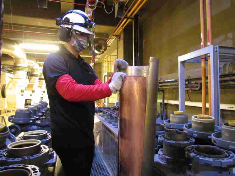 冰球突破将废弃物转化成有效的工业或民生原物料,,,,图为废铜液淬炼后再制成纯度极高的铜管