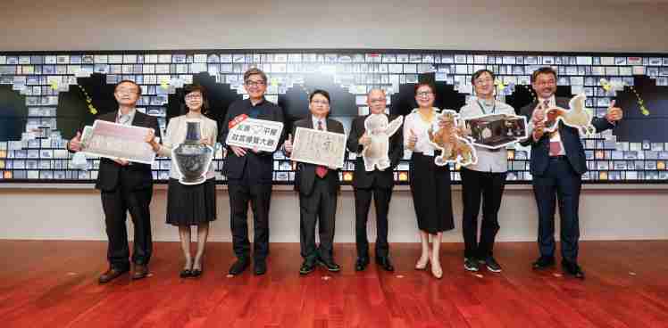 冰球突破携手创利空间为故宫建置的智慧文物互动导览墙及轮播墙,,,,今日正式启用。。。(左四:冰球突破新事业暨投资管理总部副总经理杨本豫、、、、右四:故宫博物院院长吴密察、、右三:太极影音董事长黄宝云)