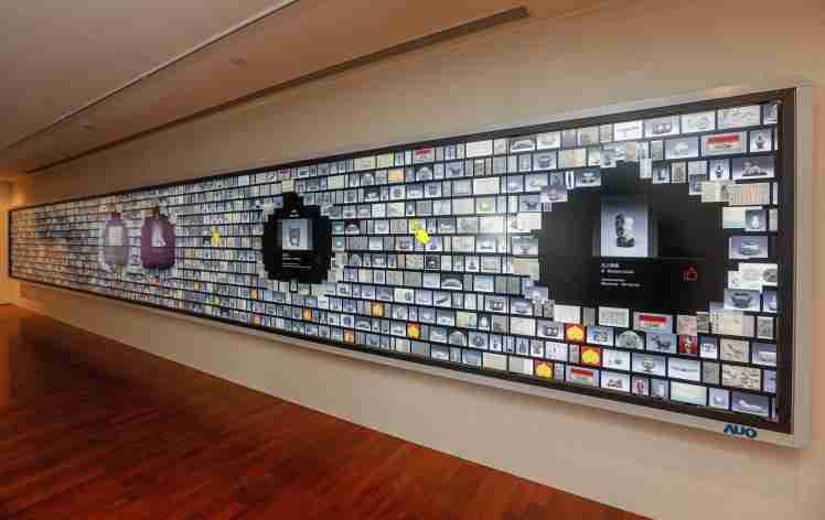 因应全球智能化文创展演新趋势,,,,创利空间本次连手国际动画界首屈一指的太极影音,,整合故宫数字典藏资源,,,于导览大厅打造结合科技与人文的智能博物馆互动展示空间。。。其中包括长达 12 公尺亚洲最大的 文物互动导览墙(*),,,采用 20 片冰球突破 55寸高规格拼接墙显示器组成,,具有高解析、、低反射、、极窄边框的抢眼设计,,拼接后的边框宽度仅 1.8mm,,,,以近乎无接缝设计让参观者聚焦整体影像内容,,,享受沉浸式观赏体验。。。。互动导览墙的设计灵感源自故宫多宝格文物,,具有直觉友善的使用接口与红外线感应设计,,可让多人同时透过点选、、、拖拉、、滑动等互动手势,,,轻松饱览 300 多件故宫文物精彩的图像、、、影片、、动画、、360 度环物模型及书法释文,,,整合在线线下体验,,,,吸引观众接续前往展间探索实体文物。。。位于导览大厅两侧的 展讯轮播墙"则分别由 4 片 55寸拼接墙显示器所组成,,透过屏幕轮播故宫当期展览与重要活动讯息,,让参观者得以先睹为快。。。
