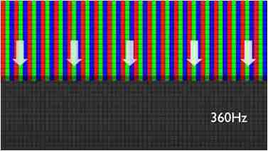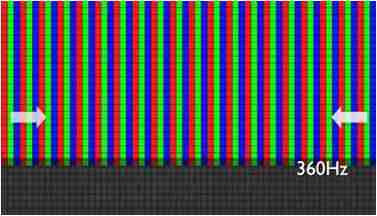 传统液晶驱动是从左到右单向进行,,,,在画面更新速度愈来越愈快的情况下,,,,位于驱动线路末端的右下角区域,,,画素的闸极来不及在短时间内获得足够电压,,无法显示出正确的颜色资讯。。 |